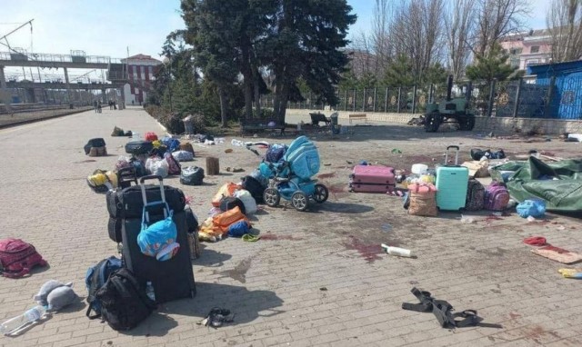 Kirilenko disse ainda que foram usadas bombas de fragmentação contra a estação de Kramatorsk. Esse tipo de munição, proibido por tratado a que nem Moscou nem Kiev aderiram, libera projéteis menores no ato da explosão, amplificando a área de dano e, por consequência, o risco de mortes e ferimentos.