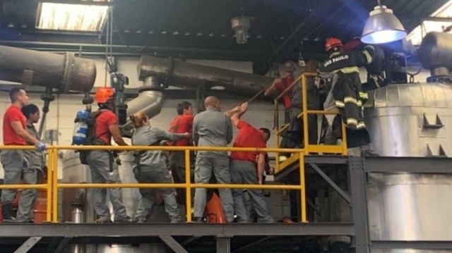 Segundo o Corpo de Bombeiros, um homem teve que ser retirado de um reservatório e foi atendido no local com parada cardiorrespiratória. Um outro homem também foi atendido no local com queimaduras leves.