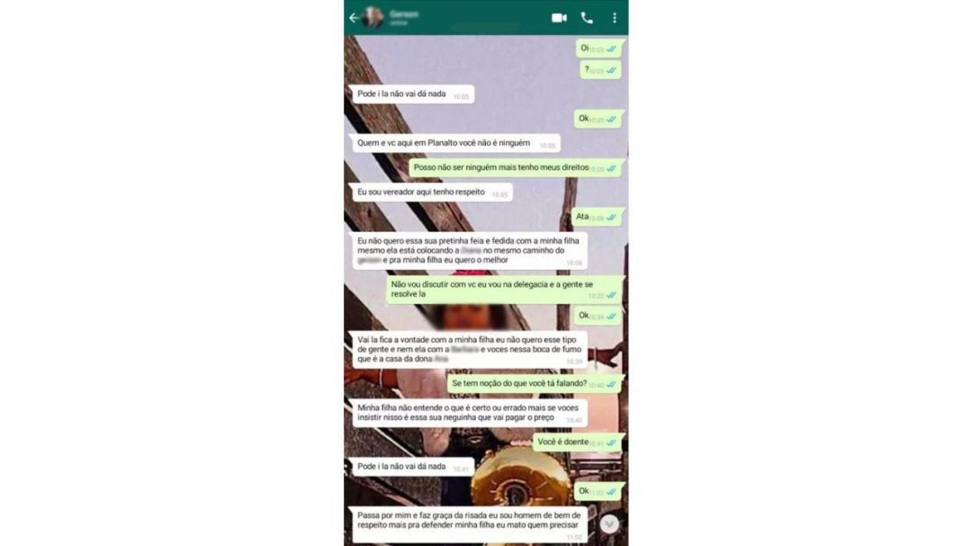 “Eu não quero essa sua pretinha feia e fedida com a minha filha […] Minha filha não entende o que é certo ou errado, mas se vocês insistirem nisso essa sua neguinha que vai pagar o preço”, lê-se no trecho da conversa.
