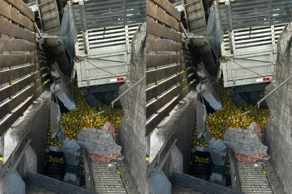 Ainda segundo o relato do proprietário do sítio, o caminhão Mercedes-Benz estava estacionado corretamente e com os protocolos de segurança adotados para o descarregamento da carga.