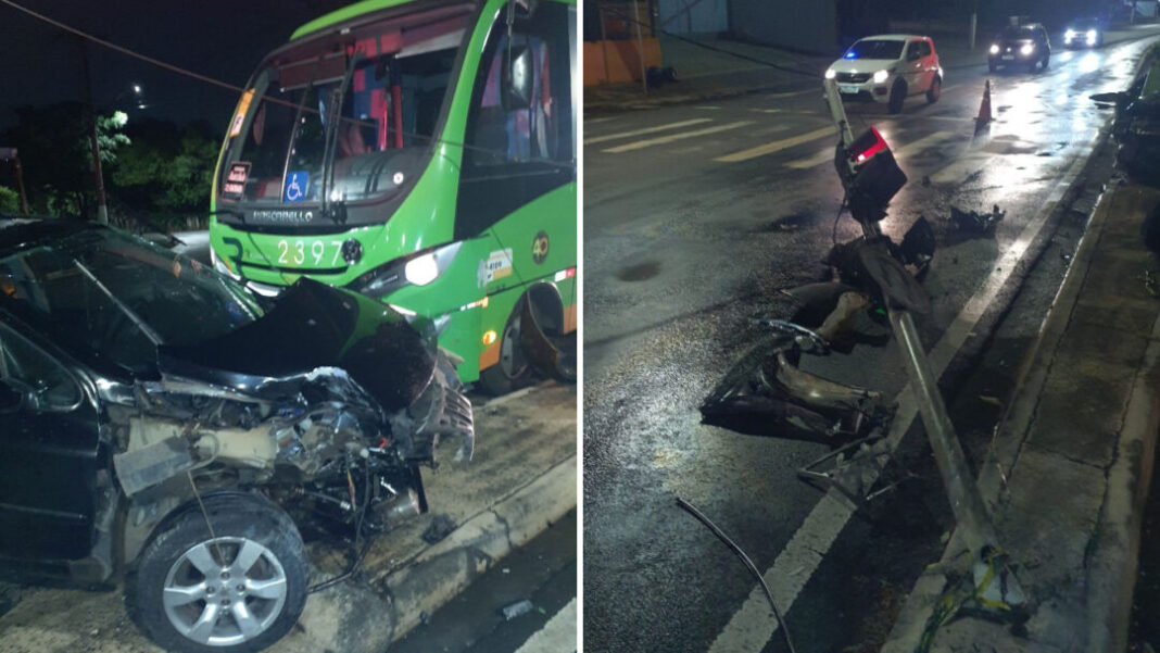 Um micro-ônibus atingiu um carro no cruzamento da Avenida Iacanga com a Rua Izolina Geminiani Rosa, em Americana, na noite desta quinta-feira (15). Com o impacto da batida, o poste do semáforo instalado no local também foi atingido, provocando transtornos no trânsito da região.