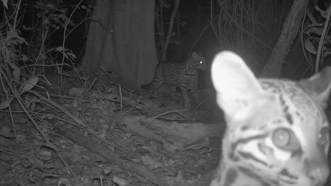 Câmeras de segurança registraram a presença de duas jaguatiricas, possivelmente uma adulta e outra filhote, em uma área de mata em Americana, na madrugada de sábado (25), por volta das 4h26. A localização exata não foi informada para preservar a segurança dos animais.