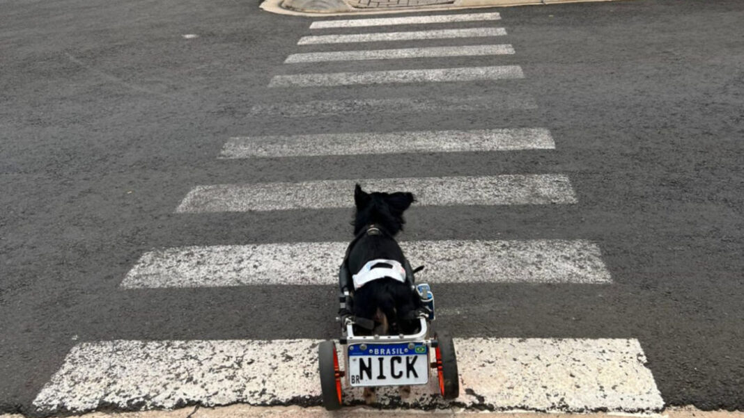 Com a perda do movimento traseiro, Nick, descrito como uma mistura de basset com vira-lata, ganhou uma cadeira de rodas adaptada. O vendedor Anderson Santos, tutor do animal, personalizou a estrutura com uma placa de identificação e incluiu uma caixa de som. “Mesmo com essa dificuldade, fazemos de tudo para o Nick levar uma vida normal. Instalei até uma caixinha de som na cadeira para ele ouvir uma música enquanto passeia. Mesmo ficando velhinho, ele ainda tem bastante energia para gastar”, contou.