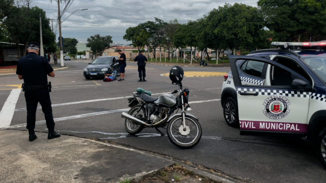 Um motociclista ficou ferido após um acidente envolvendo uma moto e um carro na manhã desta segunda-feira (23), por volta das 7h40, na Rua João Santa Rosa, no bairro São Luiz, em Americana. A colisão aconteceu em uma rotatória e provocou lentidão no trânsito durante o horário de maior movimento na região.