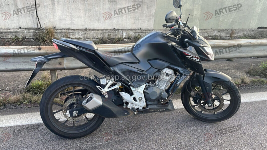 Com o impacto, a motocicleta tombou sobre a pista. Após a batida, o motorista do carro deixou o local sem prestar socorro.