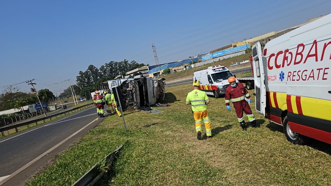 Uma carreta capotou na manhã desta quinta-feira (29), na alça de acesso do km 125 da Rodovia Anhanguera (SP-330), em Americana. O acidente aconteceu por volta das 9h40.