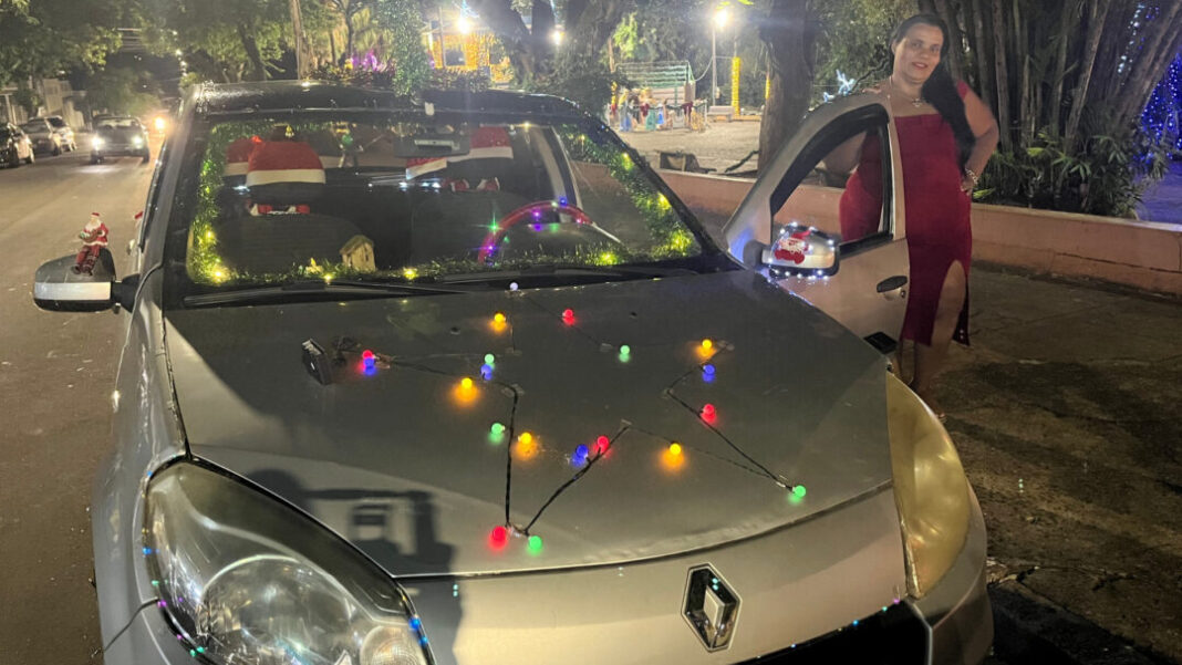 A ideia surgiu no fim de novembro, em um período delicado. “Eu tava num momento difícil da minha vida, não queria mais trabalhar, não queria ver ninguém. Aí pensei: por que não decorar meu carro no tema do Natal?”, conta Juliana.