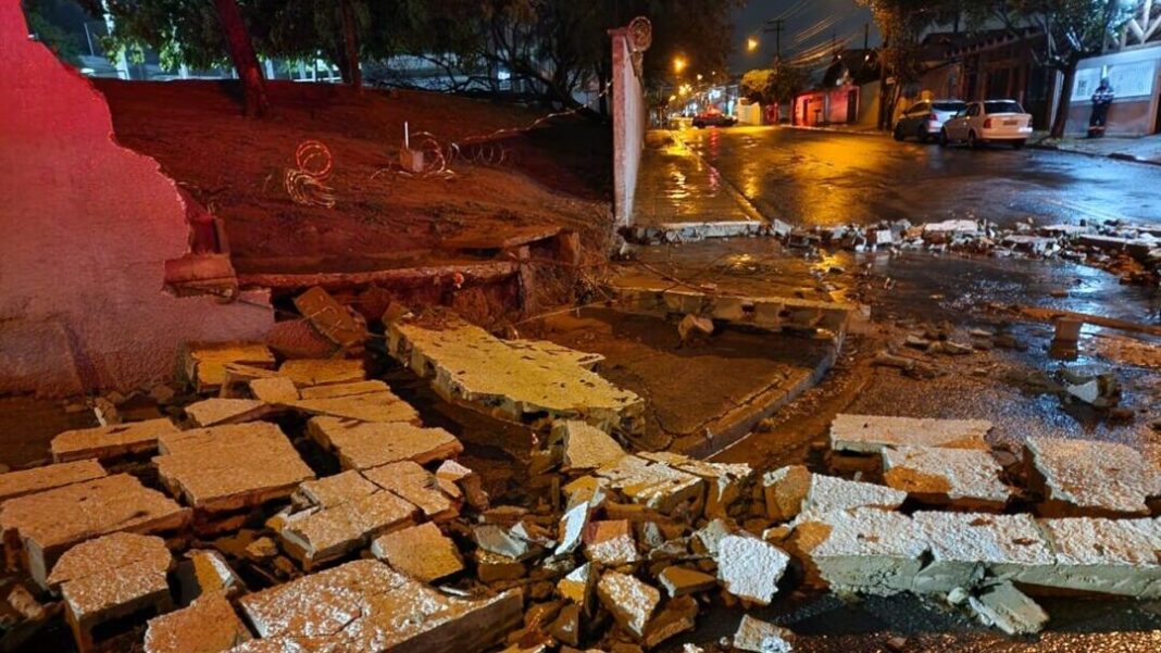 Outro incidente provocado pelo temporal foi o desabamento de parte do muro da Escola Estadual Professor William Silva, localizada no Parque Novo Mundo. Felizmente, ninguém ficou ferido e não houve registro de veículos atingidos. Agentes de trânsito isolaram a área como medida preventiva.