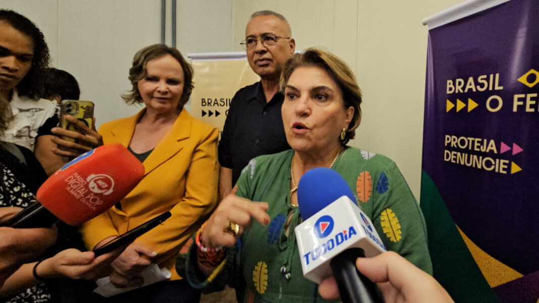 “O Pacto Brasil contra o Feminicídio integra esses três poderes, Legislativo, Judiciário e Executivo. E se isso funcionar bem, eu não tenho dúvidas de que os resultados serão outros. O que nós não podemos admitir é nenhum tipo de violência contra as mulheres. Não queremos feminicídio, que é o fim da linha, mas também não queremos ofensas, não queremos machismo, não queremos misoginia, não queremos nenhum tapa, nenhum empurrão, não queremos violência política de gênero. Nós queremos paridade entre mulheres e homens em todos os espaços de poder. Nós não queremos violência digital. E aí a mídia tem um papel fundamental: não reproduzir matérias, não reproduzir programas que incentivem a misoginia, que a gente vê sair inclusive da boca de jovens”, disse.