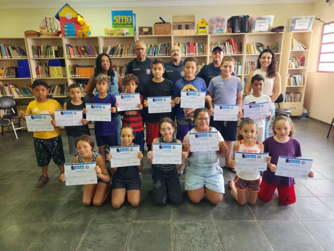 A Guarda Civil Municipal de Limeira realizou, nesta terça-feira (27), a entrega dos certificados de participação do projeto “Guarda Amigo nas Férias”, desenvolvido com alunos da rede municipal na Escola Maria Aparecida De Luca Moore, no bairro Jardim Aeroporto.