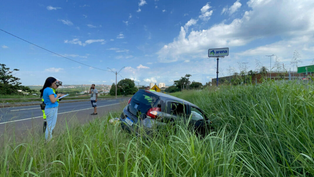 Um acidente de trânsito foi registrado na manhã desta terça-feira (27) na Rodovia Geraldo de Barros (SP-304), no km 167, em Piracicaba, no sentido São Pedro. Um Fiat Moby colidiu na traseira de um Nissan Kicks e, em seguida, saiu da pista, caindo na valeta às margens da rodovia.