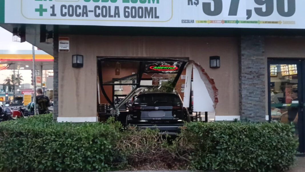 Mulher tenta estacionar, acelera e carro invade rede de fast food em Piracicaba