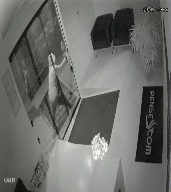 Em uma ação rápida, de 20 segundos, os criminosos quebram outra porta de vidro e furtaram oito notebooks, cabos de rede e de força, suportes, carregadores dos equipamentos, teclados e mouses com fio e sem fio, além de suportes.