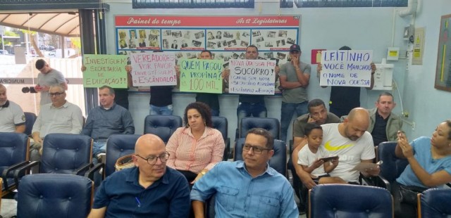 Manifestantes protestaram nesta segunda-feira (27) na Câmara de Nova Odessa contra um suposto pedido de propina por um evento do MEC (Ministério da Educação) realizado em agosto do ano passado na cidade.