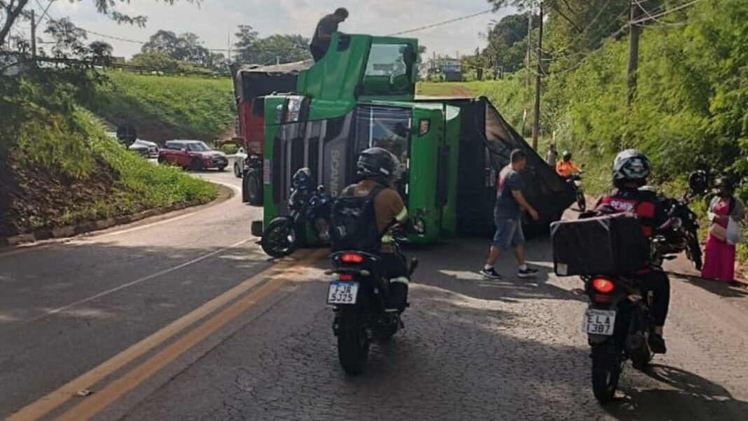 O tombamento de um caminhão carregado com aproximadamente 40 toneladas de sucata causou transtornos no trânsito de Paulínia no fim da tarde de sexta-feira (7). O veículo tombou na Rodovia Professor Zeferino Vaz (SP-332), na altura do quilômetro 119, bloqueando parcialmente a alça de acesso ao trevo de Betel.