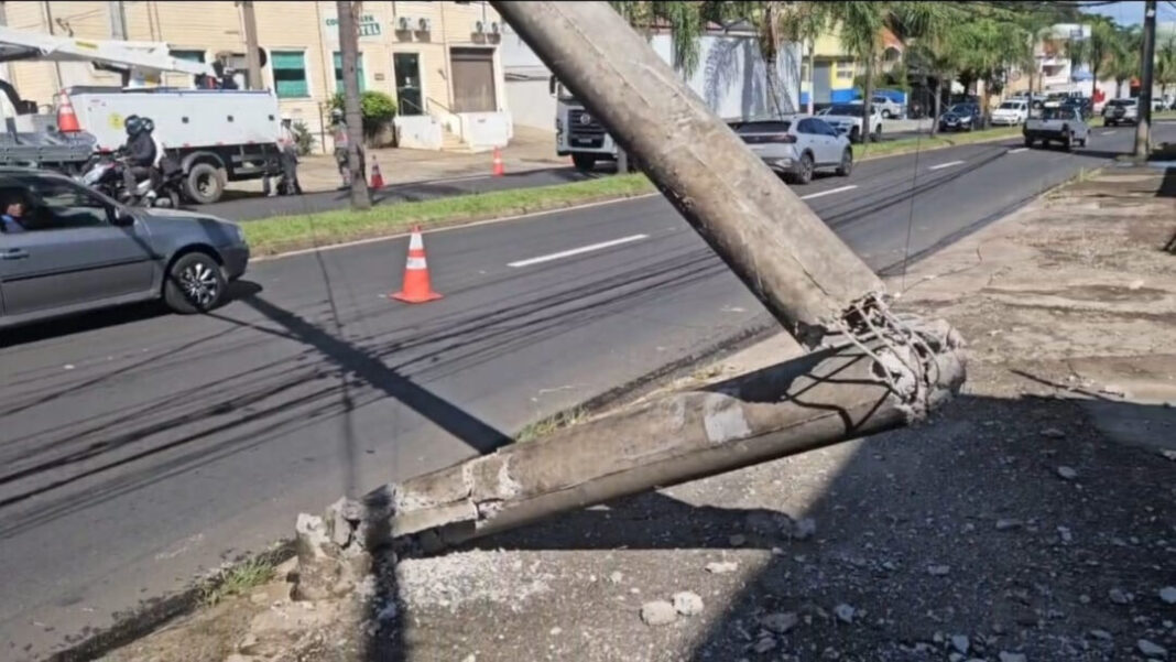 Com o impacto, o poste ficou destruído, provocando a interrupção no fornecimento de energia elétrica. A CPFL Paulista foi acionada e trabalha no local para normalizar a situação.