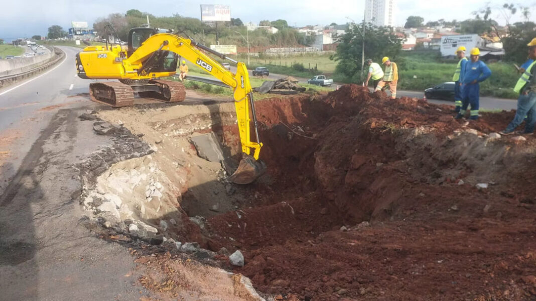 A concessionária Rodovias do Tietê realizou entre segunda-feira (24) e terça-feira (25) uma obra emergencial para recuperar o pavimento da Rodovia Jornalista Francisco Aguirre de Proença (SP-101), no Jardim Nossa Senhora de Lourdes, região do Rosolém, em Hortolândia. A intervenção foi necessária após o rompimento de uma tubulação subterrânea provocado pelo temporal do fim de semana, o que gerou o afundamento da pista.