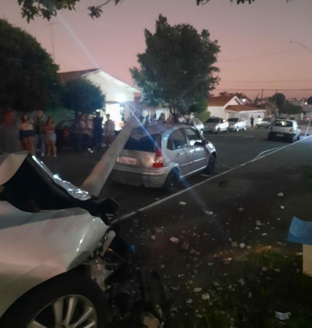 O veículo desgovernado só parou após bater em um poste de energia elétrica, que com o impacto, caiu sobre outro carro que estava estacionado.