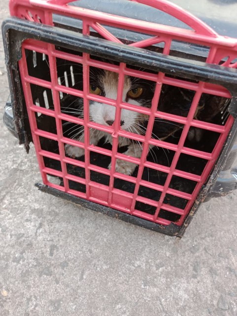 Um gatinho foi resgatado por uma equipe do Corpo de Bombeiros de Americana após ficar preso em um muro no início da tarde desta quinta-feira (4), na rua Antônio Viana de Oliveira, região do Nova Veneza, em Sumaré.