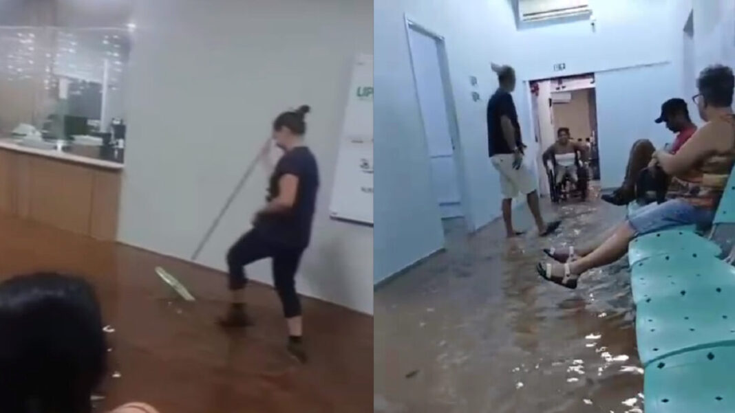 A forte chuva que atingiu a região central de Sumaré no final da noite de segunda-feira (29) causou alagamento no interior da Unidade de Pronto Atendimento (UPA) 24h do Jardim Macarenko. Vídeos divulgados por usuários mostram a sala de espera totalmente inundada, com pacientes levantando os pés e funcionária de limpeza empurrando água com rodo.