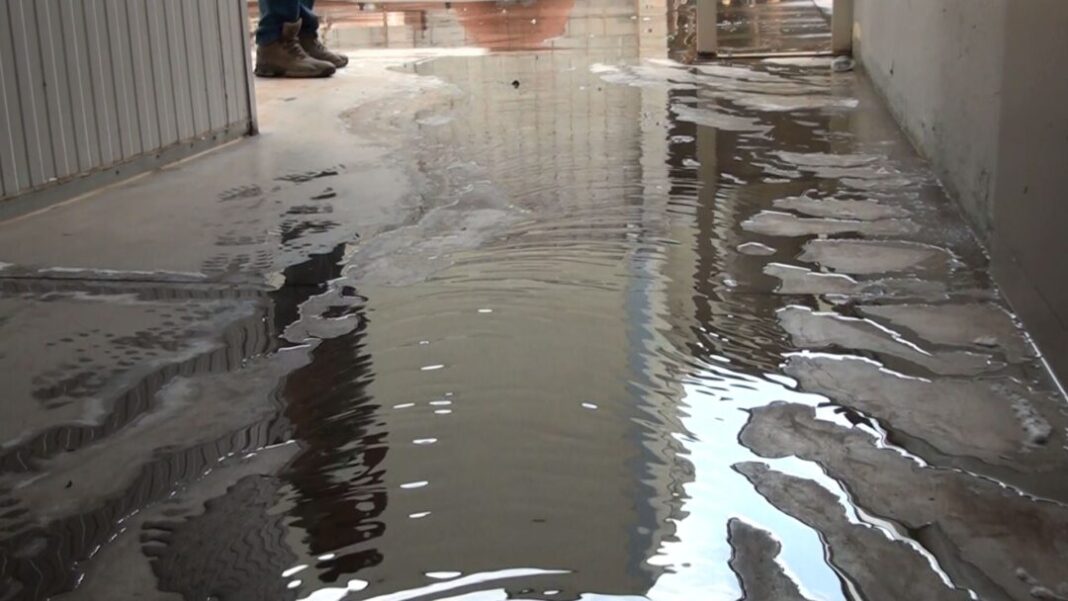 Wilson explica que, inicialmente, a água jorrava pelo asfalto, mas depois começou a sair pelo escritório da empresa, que fica em um nível mais baixo que a rua, a água percorre um caminho e atinge a estrutura, chão e banheiro do local. “Cada litro de água que está indo embora leva uma partícula de terra. Está ficando oco aqui embaixo. Ainda não trincou, mas vai ceder. Principalmente os muros”, disse o empresário.