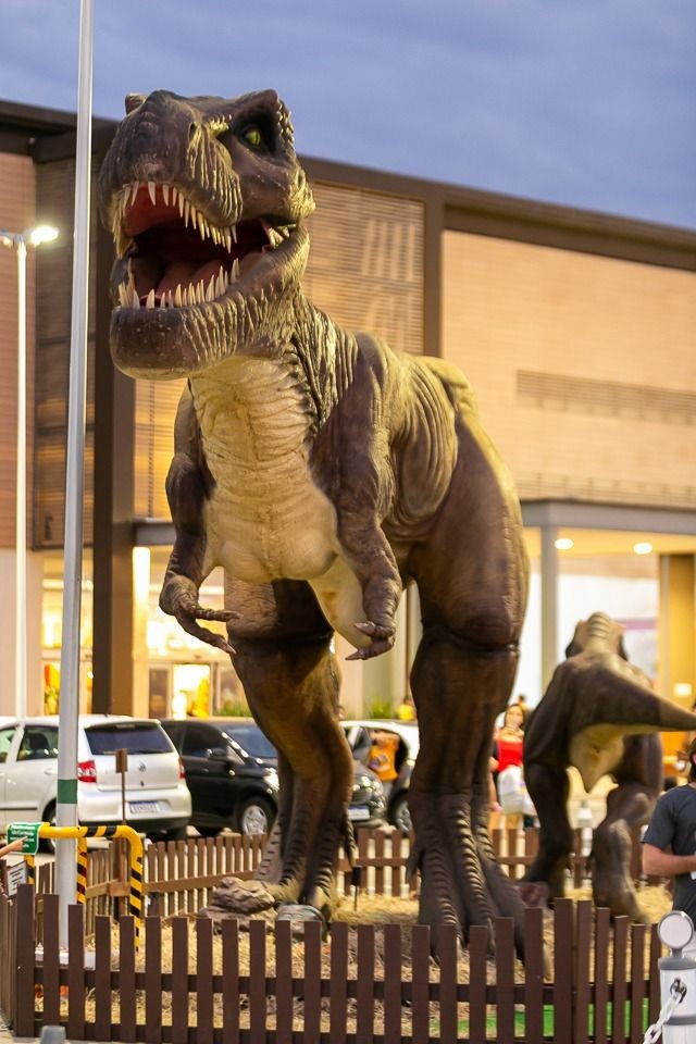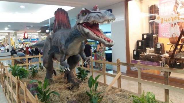 Dinossauros de até 13 metros de altura estão espalhados pelos corredores de shopping