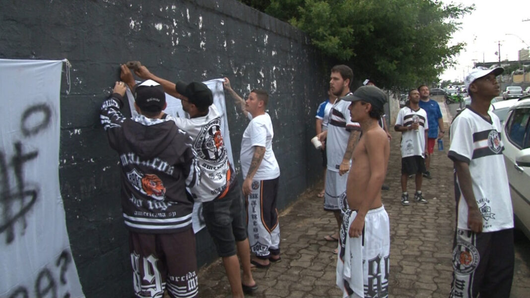 Membros de uma torcida organizada do Rio Branco realizaram um protesto contra a atual situação do clube no fim da tarde desta terça-feira (10), em frente ao Estádio Décio Vitta, em Americana.