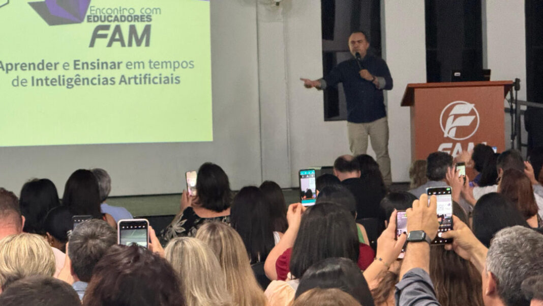 A FAM – Faculdade de Americana realizou na noite de sexta-feira (3) a 22ª edição do Encontro com Educadores FAM, que neste ano trouxe o tema “Aprender e Ensinar em Tempos de Inteligências Artificiais”, ministrado pelo educador Idelfranio Moreira. No total, 500 professores participaram do evento.