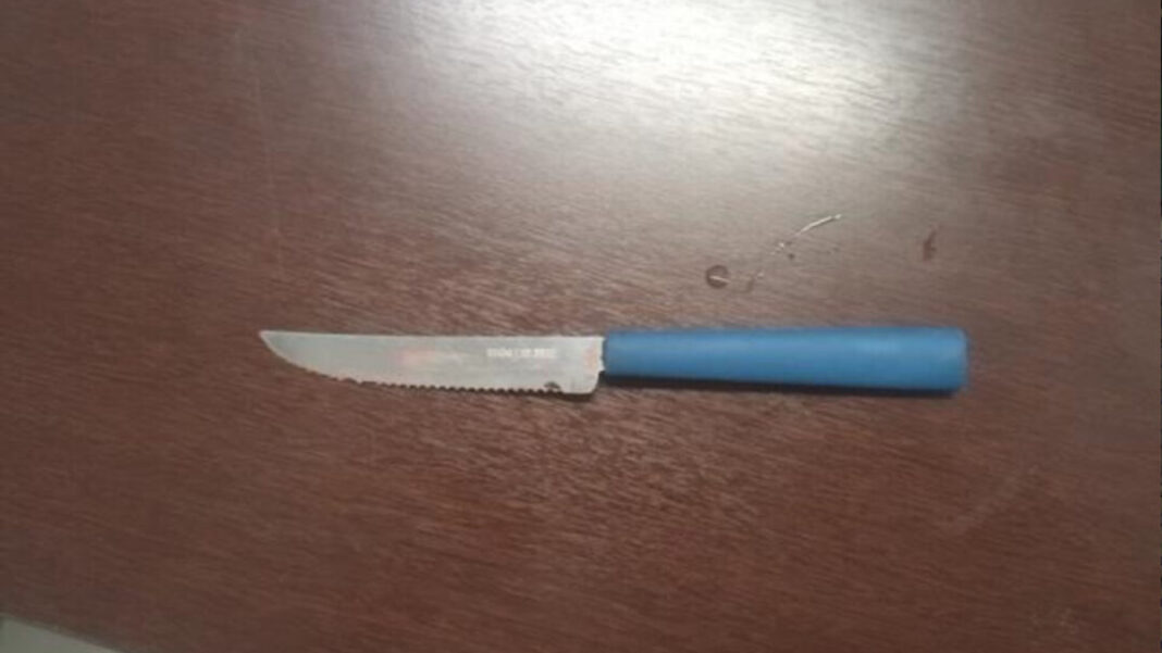 A faca utilizada na agressão foi apreendida e será submetida à perícia pelo Instituto de Criminalística.