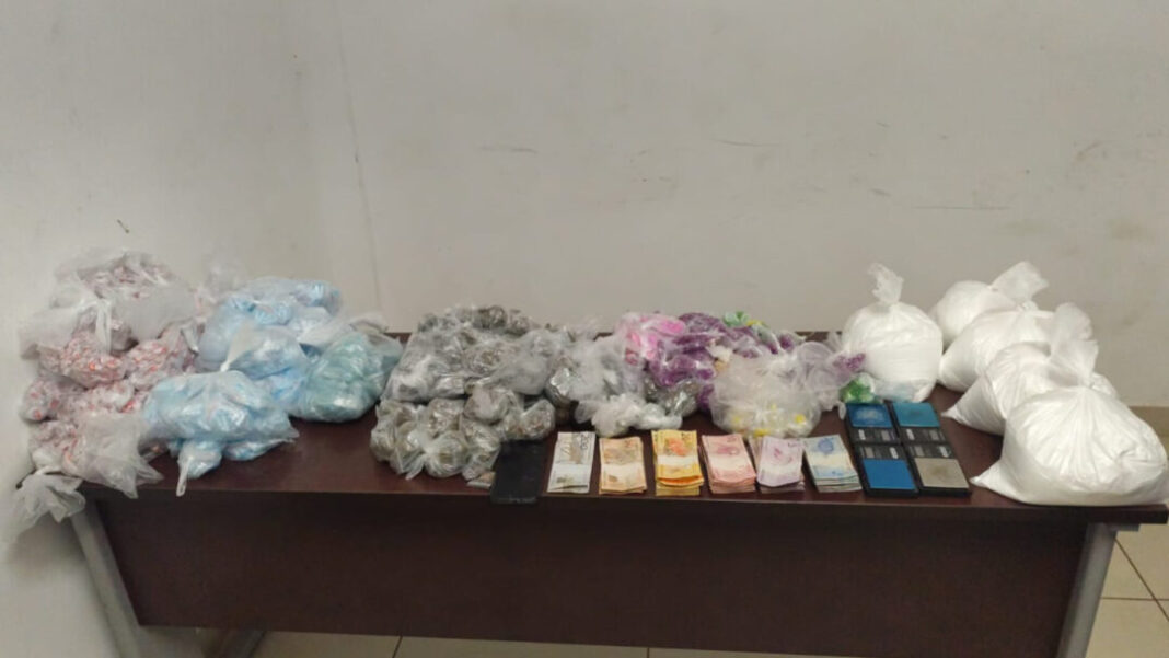 Durante a busca domiciliar, os agentes localizaram diversos sacos plásticos com grande quantidade de drogas de diferentes tipos e apreenderam também R$ 2.520,00 em dinheiro vivo. O casal recebeu voz de prisão em flagrante por tráfico de drogas e associação para o tráfico.