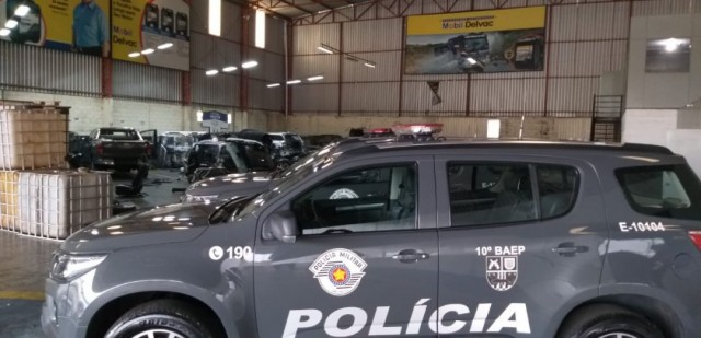 De acordo com os policiais, o local apresentava 12 chassis de caminhonetes e um motor, além de duas caminhonetes inteiras.