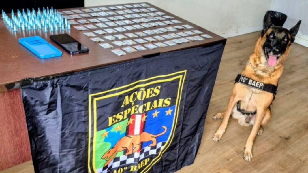Mais de 160 porções de drogas foram apreendidas na tarde desta sexta-feira (27) em uma residência na Rua Irlanda, no Jardim Europa, em Santa Bárbara d’Oeste. O material foi localizado com apoio do cão farejador Yran, do Canil do 10º Baep (Batalhão de Ações Especiais de Polícia), que indicou um ponto suspeito no quarto, onde foi encontrada uma sacola com entorpecentes fracionados e embalados para venda, escondida entre o colchão e a cama.