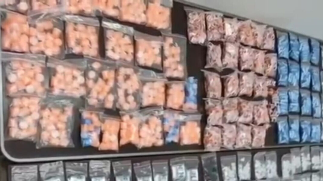 Durante varredura no portão, encontraram o saco abandonado com 2.200 porções prontas para venda: 1.922 unidades de cocaína (2,4 kg), 334 porções de maconha (quase 1 kg) e 9 pedras de crack.