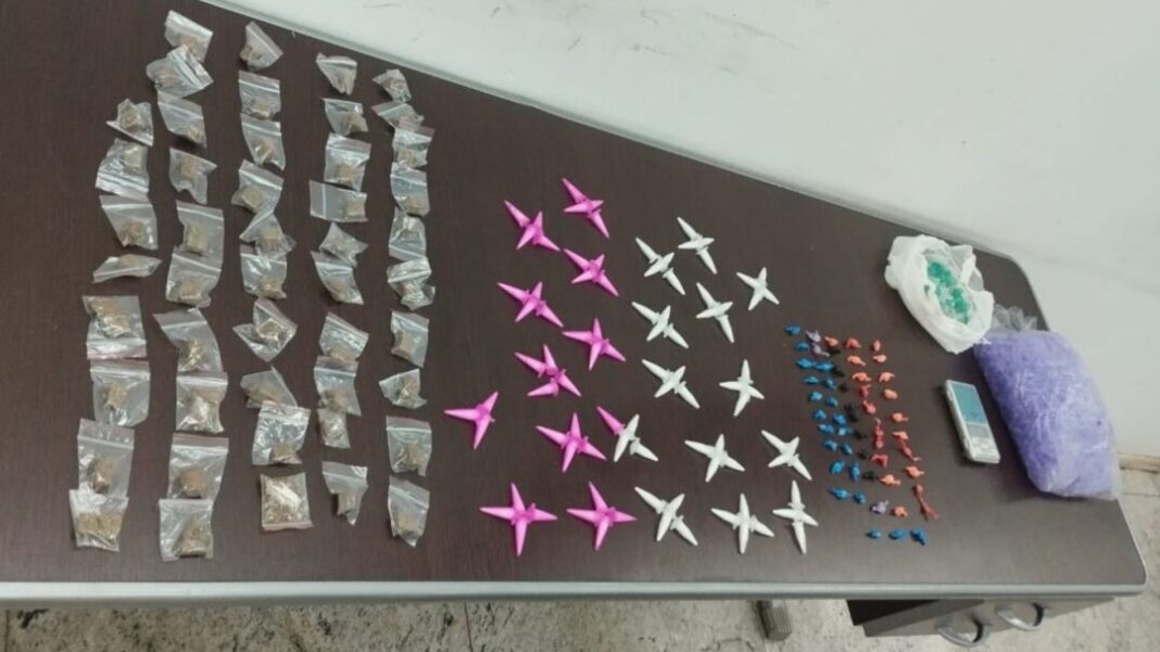 No local, foram apreendidas 48 porções de maconha, 91 microtubos de cocaína, 53 pedras de crack, além de uma balança de precisão e 1.000 microtubos vazios utilizados para o acondicionamento de drogas.