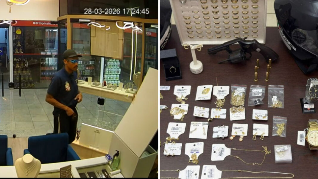 Próximo ao local, também foi recuperado o material levado da joalheria, incluindo relógios, correntes, anéis e outras peças.