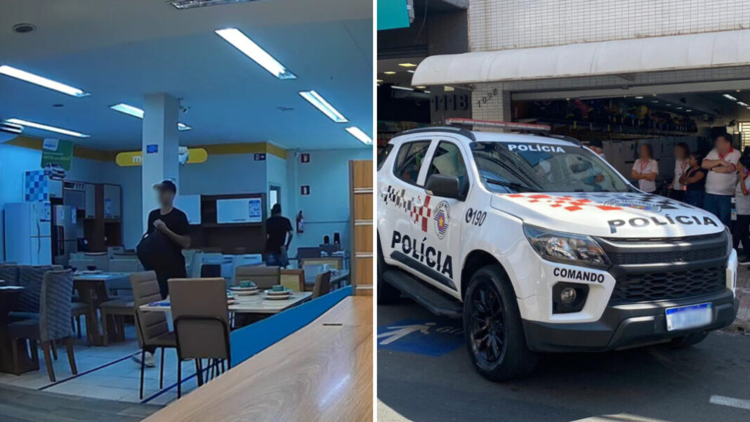 Durante a ação, o trio manteve trabalhadores e clientes sob seu controle enquanto recolhia notebooks e outros aparelhos eletrônicos. As imagens do circuito interno de segurança registraram a movimentação dos assaltantes dentro da loja.