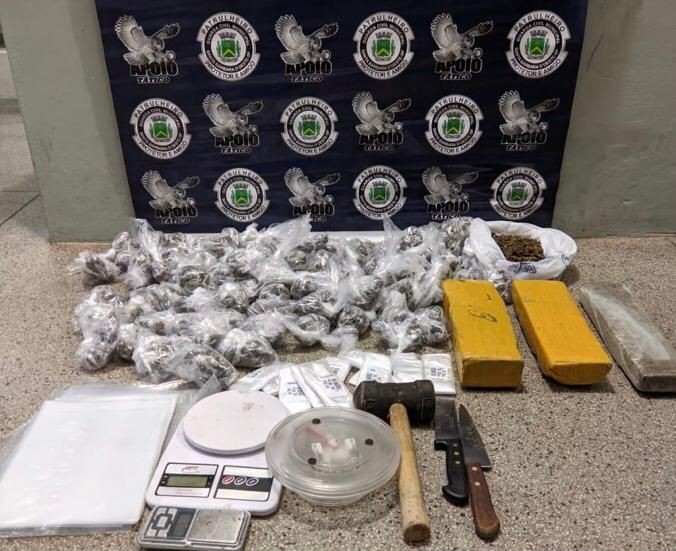 A corporação recebeu uma denúncia e guardas se dirigiram a uma casa, situada na Rua José Luiz Covolan. Em meio à fiscalização no imóvel, os patrulheiros abordaram uma dupla suspeita. Em averiguação, os guardas encontraram três tijolos de maconha, além de 2,1 mil porções da droga e balanças de precisão.