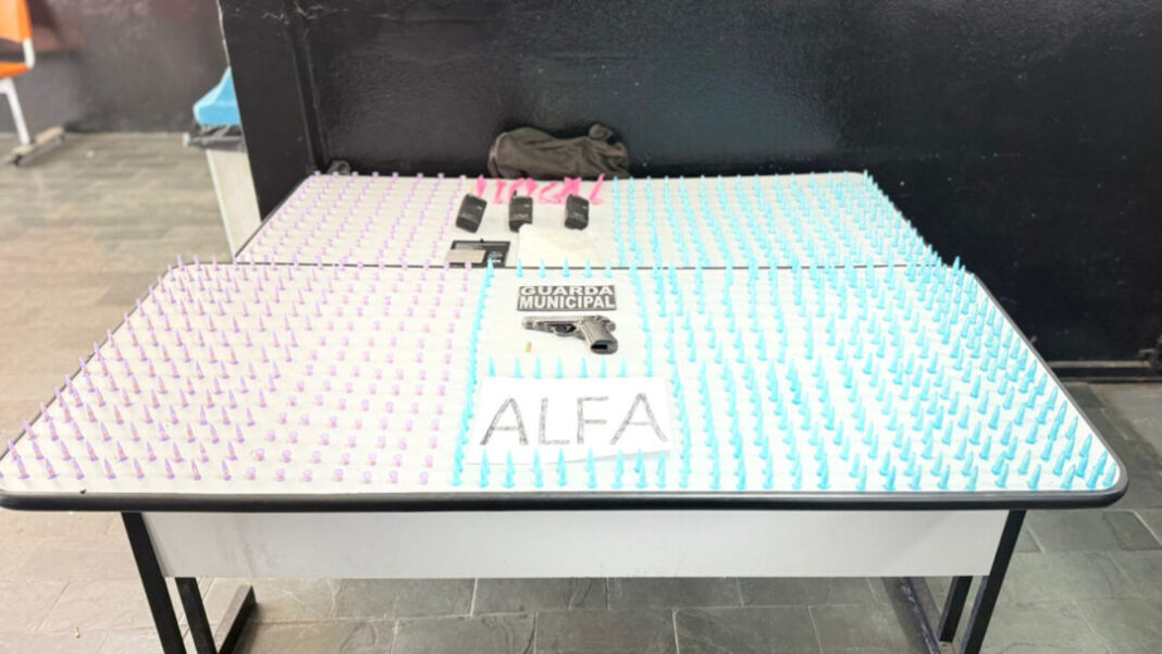 Todo o entorpecente e os objetos foram apreendidos e encaminhados ao 1º Distrito Policial. A arma também foi recolhida para perícia.