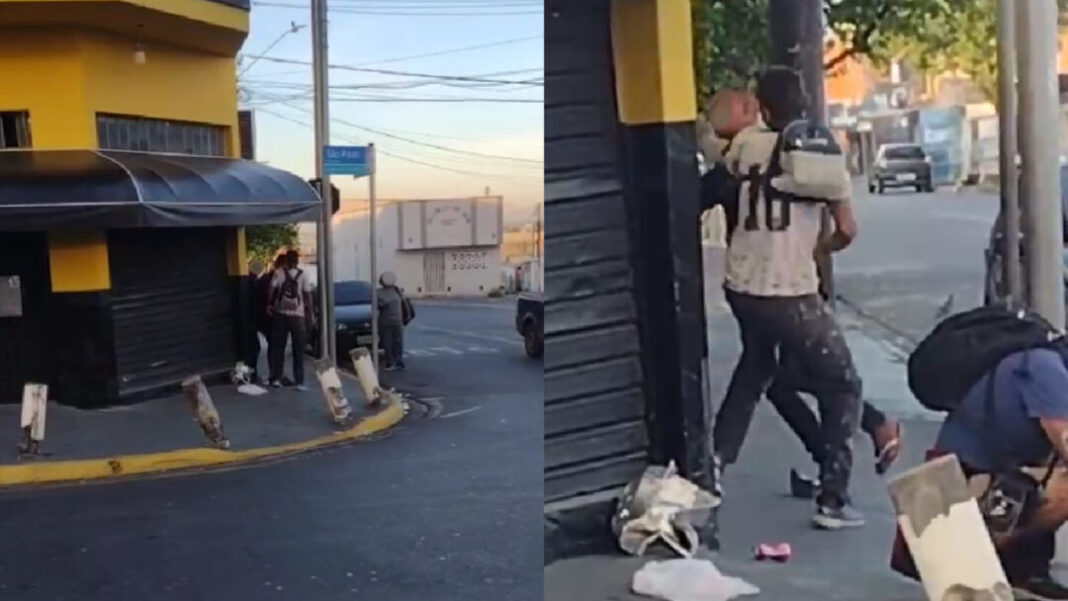 A atitude causou a indignação das pessoas que aguardavam no ponto de ônibus próximo. Um dos espectadores da cena, um homem adulto que ia para o trabalho, não se conformou com a situação e passou a ofender e agredir o infrator, que reagiu.