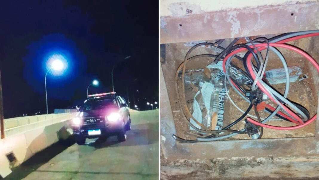 Durante a ronda, uma equipe da Romu (Ronda Ostensiva Municipal) flagrou o suspeito mexendo na caixa de energia elétrica de um poste de iluminação pública. Ao receber voz de parada, o homem arremessou uma ferramenta de cima do viaduto e tentou fugir a pé, no sentido da Avenida Bandeirantes.