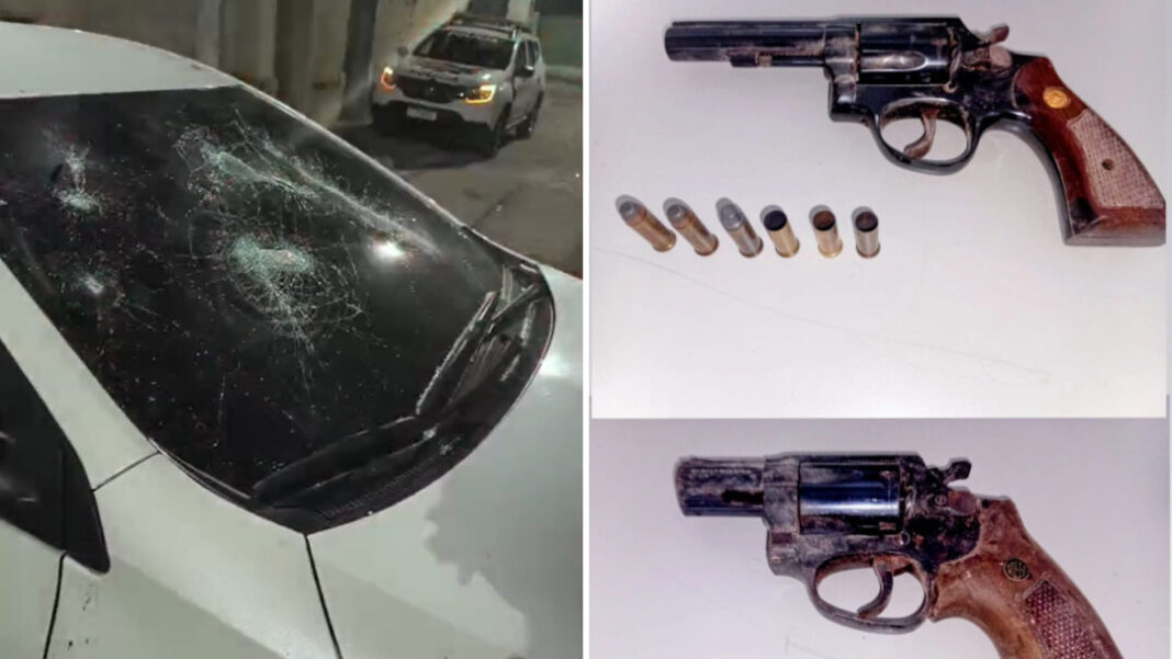 Ao chegar ao endereço indicado, os policiais não encontraram vítimas no local, mas localizaram um veículo com diversas marcas de disparos de arma de fogo e vidros quebrados, o que indicava confronto armado ocorrido momentos antes.