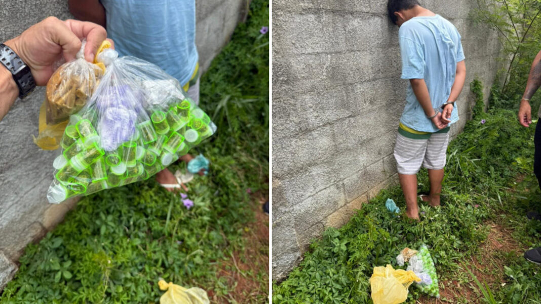 Durante a abordagem, o jovem indicou aos policiais um esconderijo em uma área verde próxima, ao lado de uma quadra e nos fundos de uma escola do bairro Jardim Oriente. No local, os agentes encontraram a maior parte dos entorpecentes, todos já fracionados e embalados para venda.