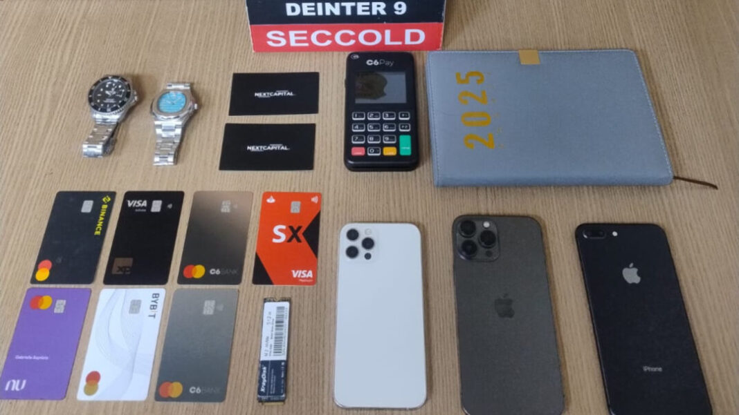 Durante o cumprimento do mandado na residência do suspeito, a Polícia Civil apreendeu sete cartões bancários de diferentes instituições, celulares, máquinas de cartão registradas em nome da empresa, além de documentos e agendas pessoais. O material será enviado para perícia técnica.