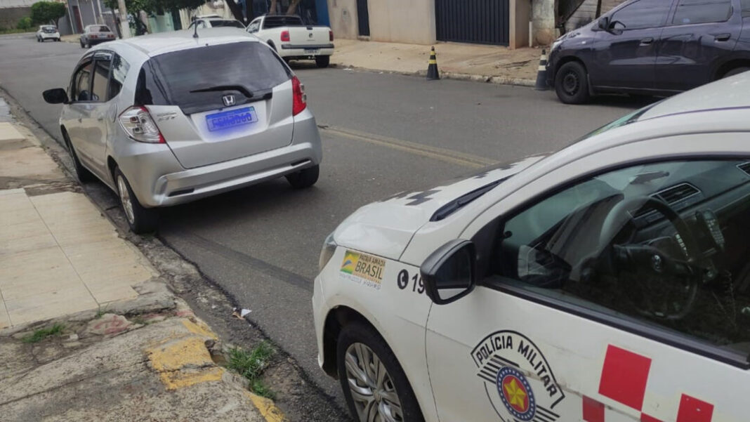 As câmeras leitoras de placas registraram diversas passagens de um Honda Fit prata, roubado dois dias antes, na região do Matão. Com as informações, policiais intensificaram o patrulhamento e localizaram o veículo circulando pela Avenida Emílio Bosco, no Jardim Minnesota. O carro estava ocupado por cinco indivíduos.