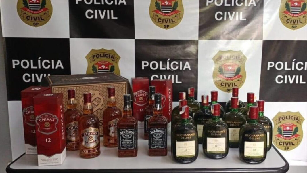 Foram apreendidas 84 garrafas da marca Chivas, 155 de Buchanan’s e 96 de Jack Daniel’s, totalizando 335 unidades. Três garrafas, uma de cada marca, serão encaminhadas para perícia no Instituto de Criminalística.