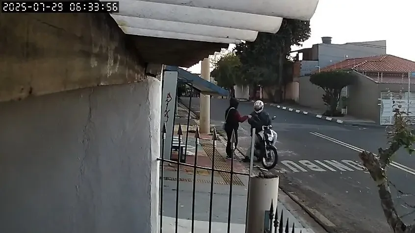 Gravações de câmeras de segurança flagraram o momento em que a vítima mexia no celular. O motociclista passou por ela, deu a volta e retornou armado para abordá-la.