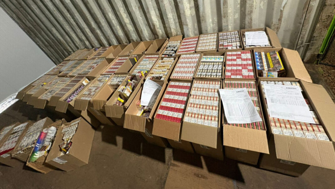 Segundo a polícia, os produtos foram encontrados armazenados em um contêiner de uma empresa de self storage. Ao todo, foram apreendidas 47 caixas de cigarros.