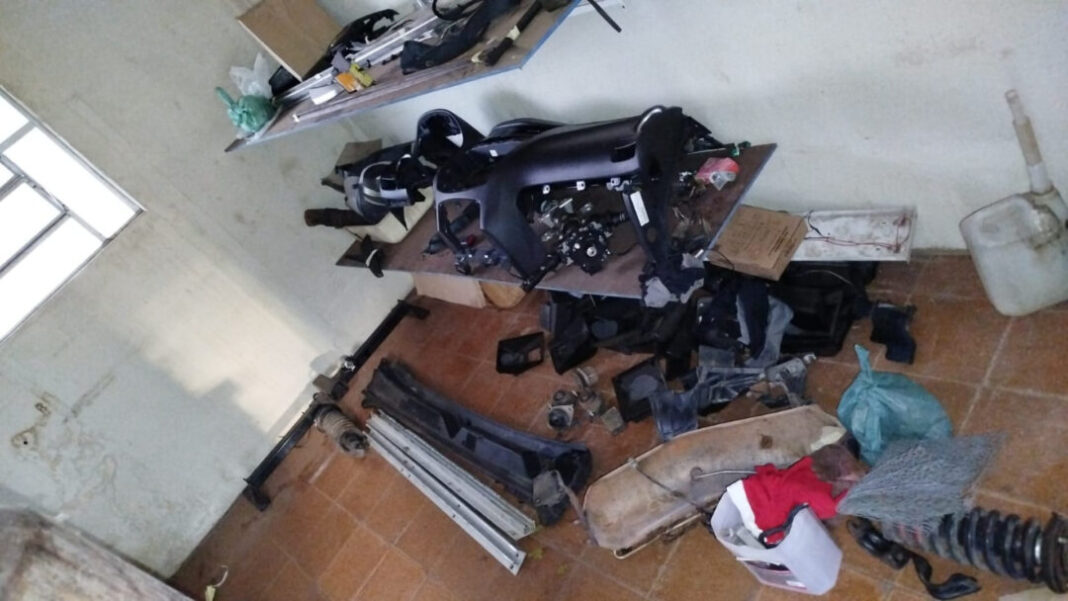 Durante a vistoria no galpão, que anteriormente abrigava uma transportadora e deveria estar desocupado, os agentes encontraram diversas peças de veículos e ferramentas pesadas usadas para o desmonte rápido de caminhonetes roubadas.