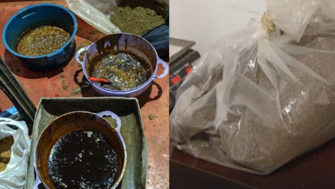 Durante a vistoria no interior do imóvel, os policiais apreenderam 11,025 kg de maconha, 3,660 kg de “dry”, e além de uma máquina usada no refino da droga e diversos materiais para fracionamento e preparo de entorpecentes. Também havia porções já divididas e equipamentos usados para manipulação.