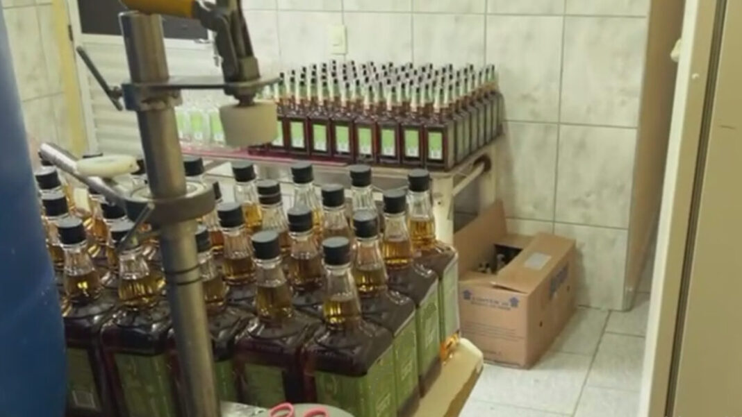 Nos vídeos divulgados pela corporação, é possível ver uma grande quantidade de garrafas falsificadas de uísque escocês e bourbon americano, imitando marcas renomadas, espalhadas pelos cômodos e corredores do imóvel.